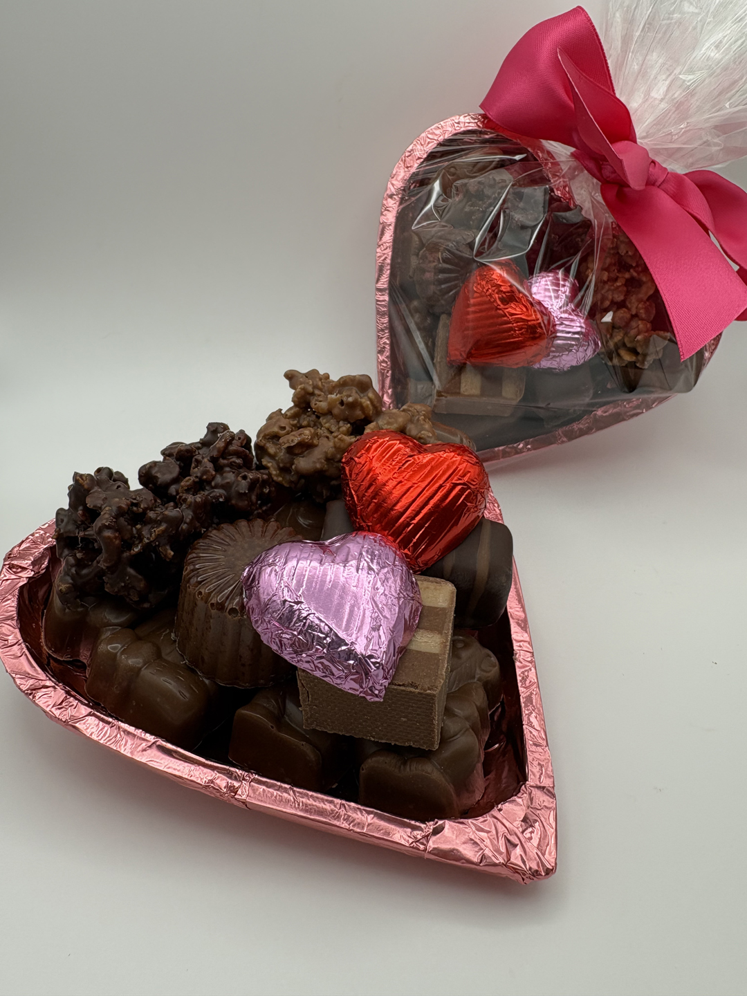 • Dark chocolate heart dish filled with chocolate animals and children’s chocolate candies